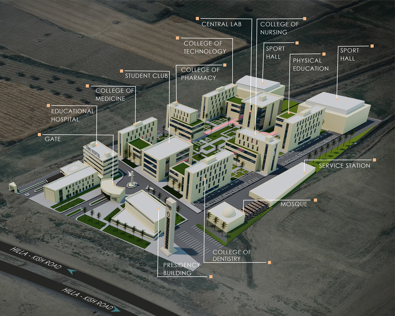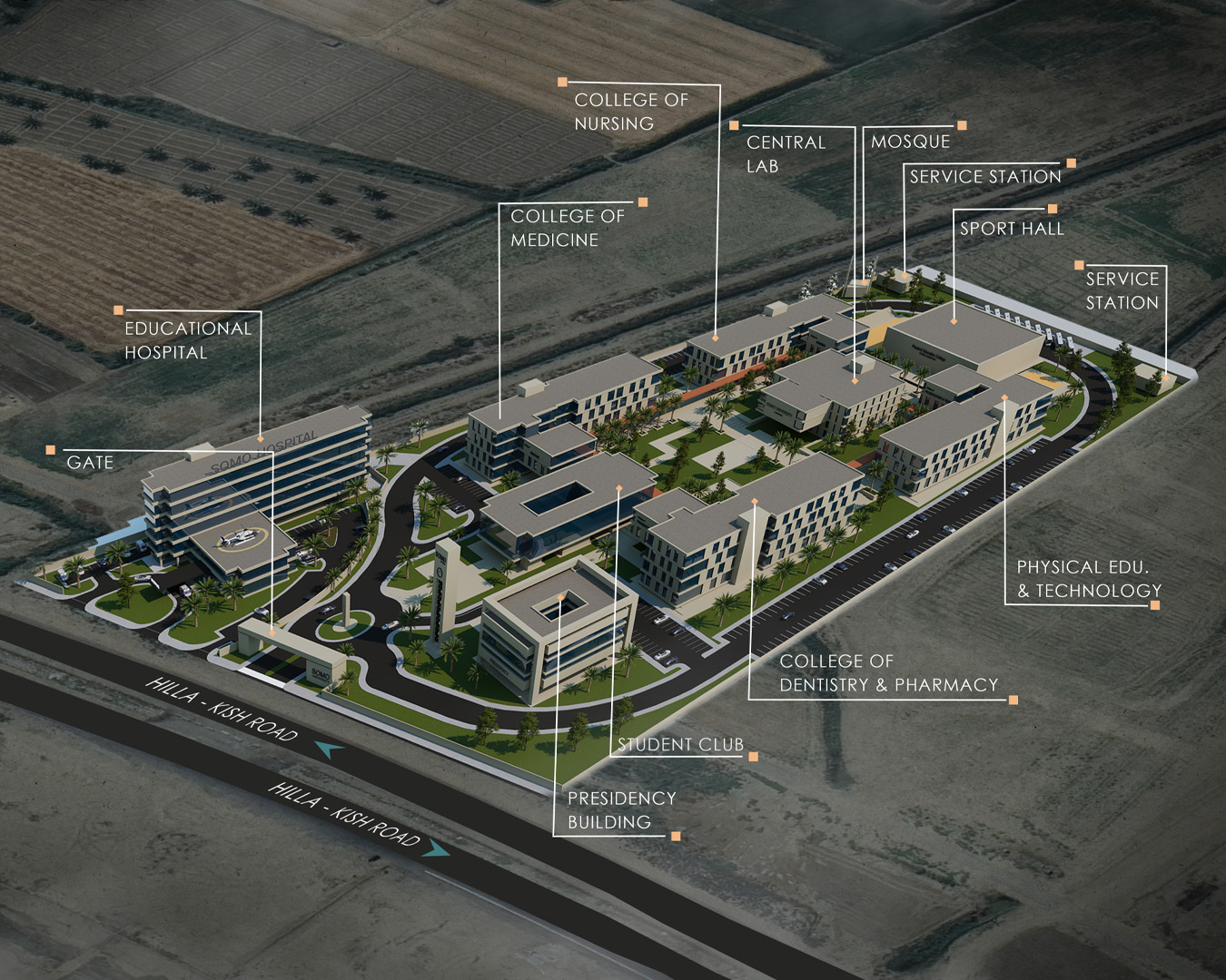 Modern, fonksiyonel ve sürdürülebilir mimari anlayışıyla tasarlanan kampüs inşaatımız; eğitim, sağlık, spor ve sosyal yaşam alanlarını bir araya getiren kapsamlı bir projedir. Proje kapsamında;